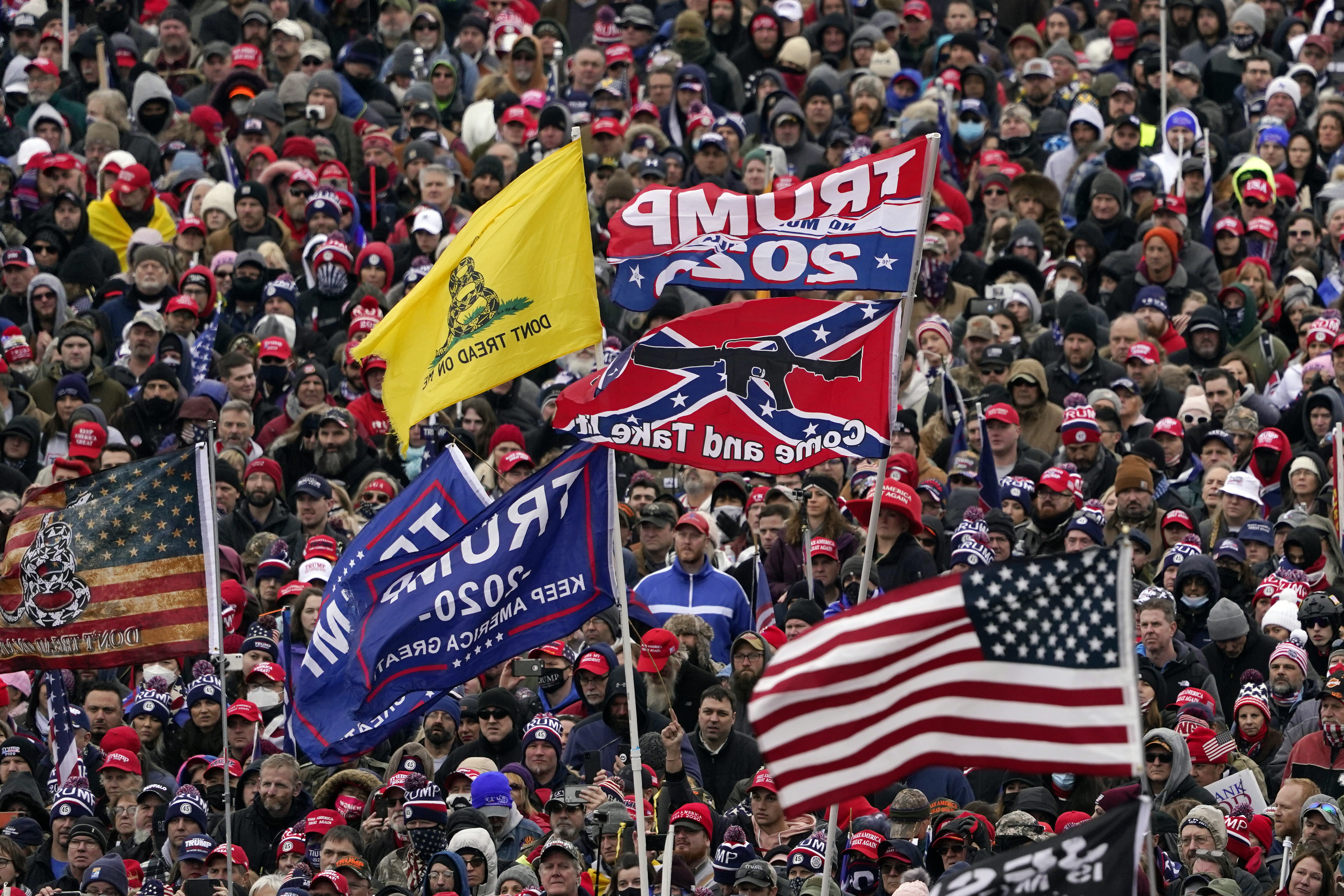 Then on Jan. 6, demonstrators stoked by Trump's false claims that he won the 2020 election brought symbols of the Old South to the siege of the Capitol, carrying Confederate flags inside and even erecting a wooden gallows with a noose outside the building.