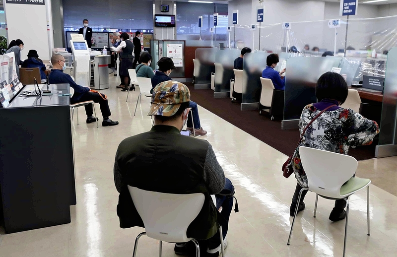 The number of people going to their local bank branches has not decreased despite the nationwide state of emergency during the coronavirus outbreak, troubling employees.
