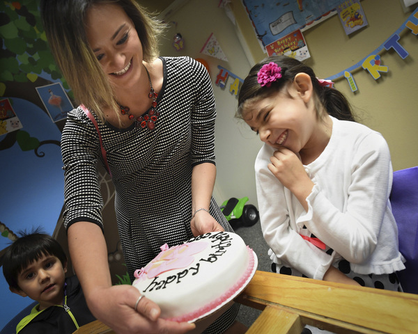 FRESNO, Calif. _ Carla Morales-Mendoza is all smiles and giggles as a lavishly and lovingly decorated cake is placed on a table in front of her as friends, family members and social workers sing "Happy Birthday" and cut her a slice of the pink and white dessert prepared for her sixth birthday.