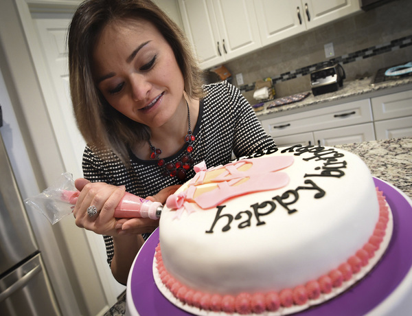 Carla says that the cake _ decorated with an image of ballet slippers, at her request _ makes her feel "happy."