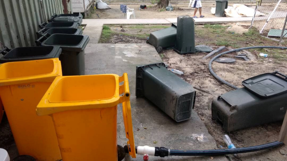 The asylum seekers, drawn largely from Afghanistan, Iran, Myanmar, Pakistan, Sri Lanka, and Syria, use rubbish bins to collect rainwater and set up makeshift shelters to protect against the tropical sun and rain.