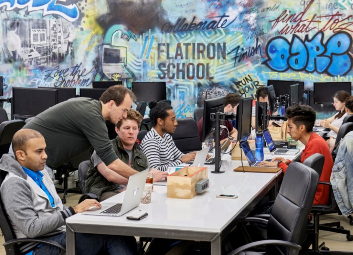 Flatiron School, which has raised $14.5 million in venture funding, boasts a job placement rate of 97 percent, with an average full-time starting salary of almost $76,000 a year. Flatiron School's outcomes are audited by a Massachusetts accounting firm, according to the school.