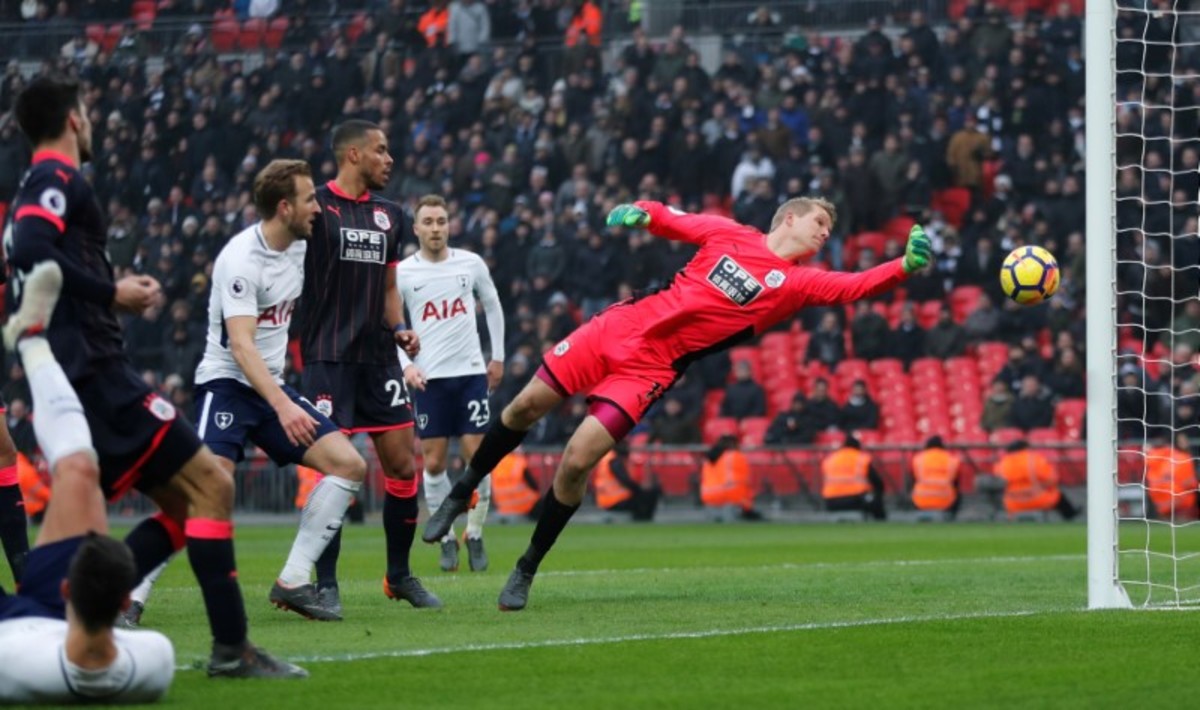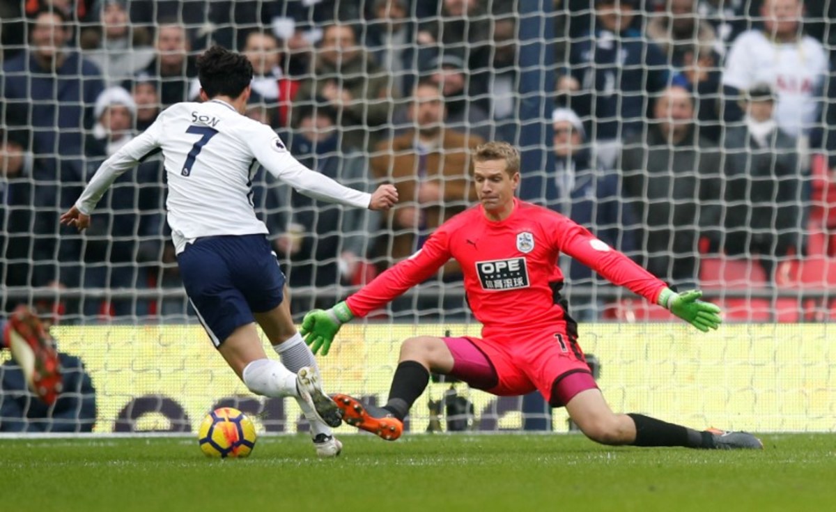 Huddersfield's Jonas Lossl kept out a close-range effort from league top scorer Harry Kane before Son fired Spurs ahead with a neat finish in the 27th minute after rounding the keeper following a defence-splitting pass by Dele Alli.