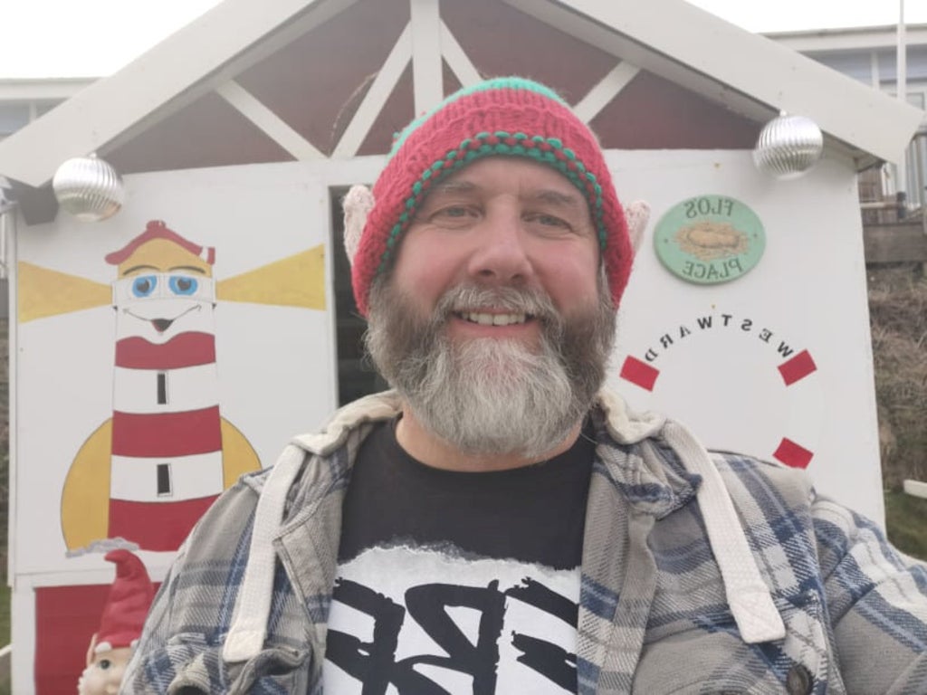 Adrian Gullick, 54, has transformed his coastal beach hut into a mini winter wonderland.