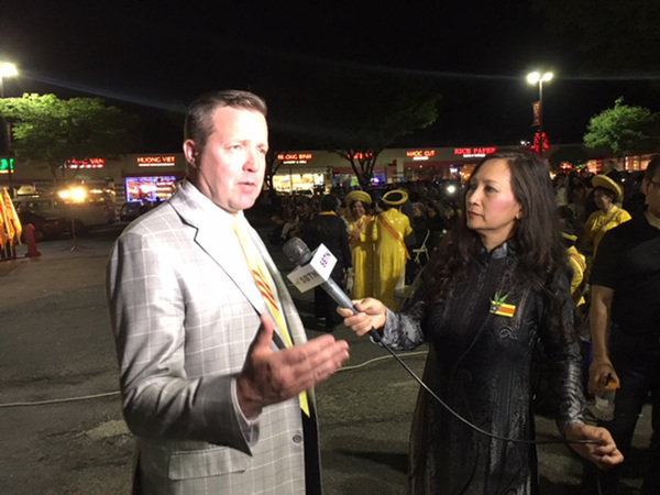 Last Saturday night, Stewart stopped in Falls Church to address hundreds of Vietnamese-Americans gathered to remember the fall of Saigon to Communist forces. Stewart donned a yellow tie with three red stripes, patterned after the South Vietnamese flag.