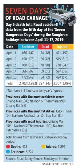 Chiang Mai posted the most road accidents at 104 while the most deaths (14) were in Udon Thani.