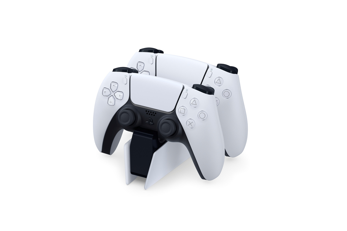 DualSense controllers for the Sony PlayStation 5 console sit on the DualSense Charging Station in this undated handout image courtesy of Sony Interactive Entertainment. SONY INTERACTIVE ENTERTAINMENT INC./Handout via REUTERS