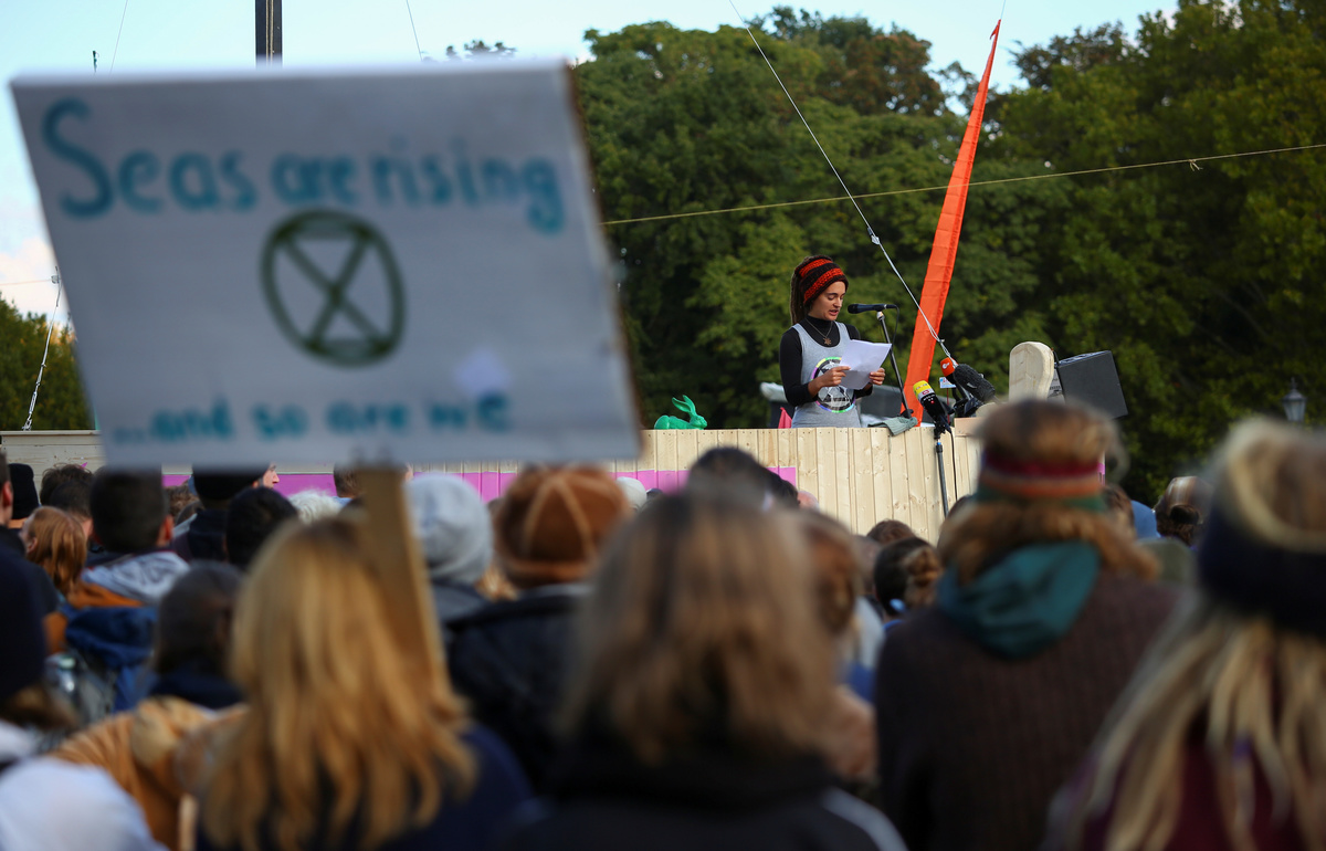 "We're here because the government is not doing enough on the climate emergency," protester Lizzy Mansfield said in London. "We only get one planet and so we're here to try and defend it."