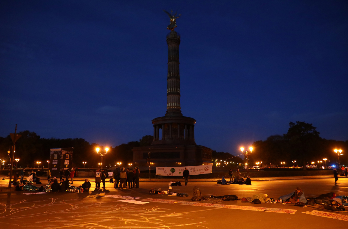 Defying almost freezing temperatures in Berlin, activists singing "Solid as a rock, rooted as a tree" gathered at dawn at the Victory Column roundabout near Berlin's Tiergarten park.