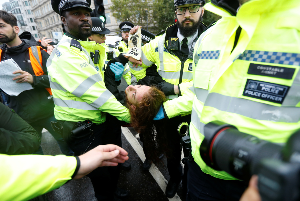 In London, police arrested 135 activists from the Extinction Rebellion group as they blocked bridges and roads in the city centre, and glued themselves to cars, while protesters in Berlin halted traffic at the Victory Column roundabout.