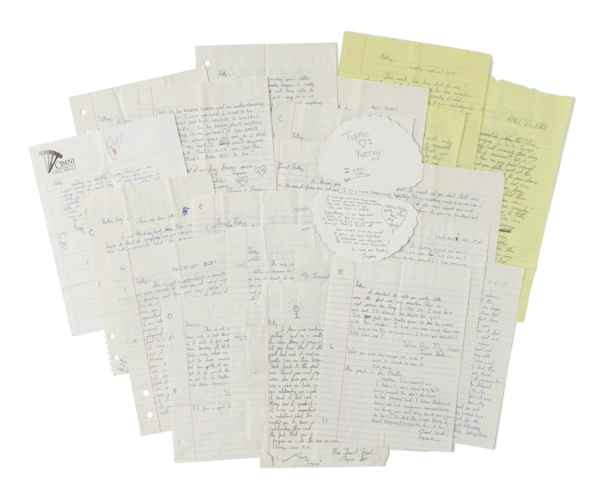 Another major item is a series of 22 love letters written by a 16-year-old Shakur to his high school sweetheart Kathy Loy between 1987-1988. They are expected to fetch $60,000 -$80,000.
