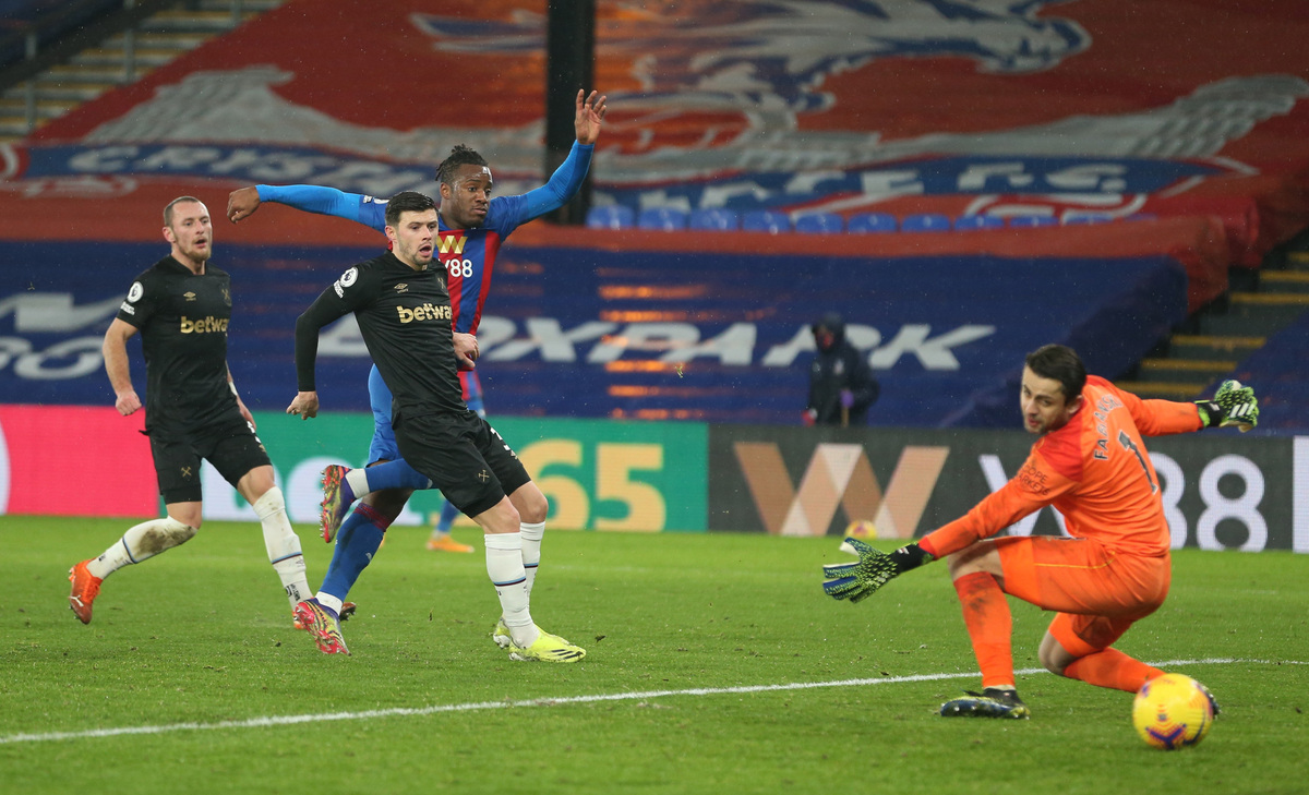 From the restart Palace gave the ball away and Antonio hit the woodwork but West Ham went ahead when Aaron Creswell's free kick was missed by Antonio but Soucek was lurking to volley in at the far post.