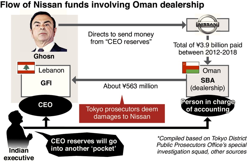 This executive joined SBA about 10 years ago and had assumed crucial posts in several affiliated companies as the dealership's owner, who is a longtime acquaintance of Ghosn, has great faith in him, according to the sources. The executive also serves as CEO of GFI, and the prosecutors believe that this person played a crucial role in the backflow of the CEO reserves to Ghosn.