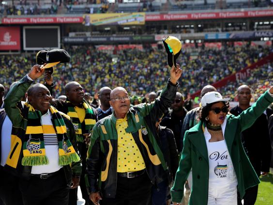 A large crowd of ruling party supporters gathered Sunday at a stadium rally in Johannesburg, where Mr Zuma touted his party's record in leading the country for more than two decades. He cited data showing that 95 per cent of South Africans have access to clean, piped water, compared to just over 50 per cent of households in 1994.