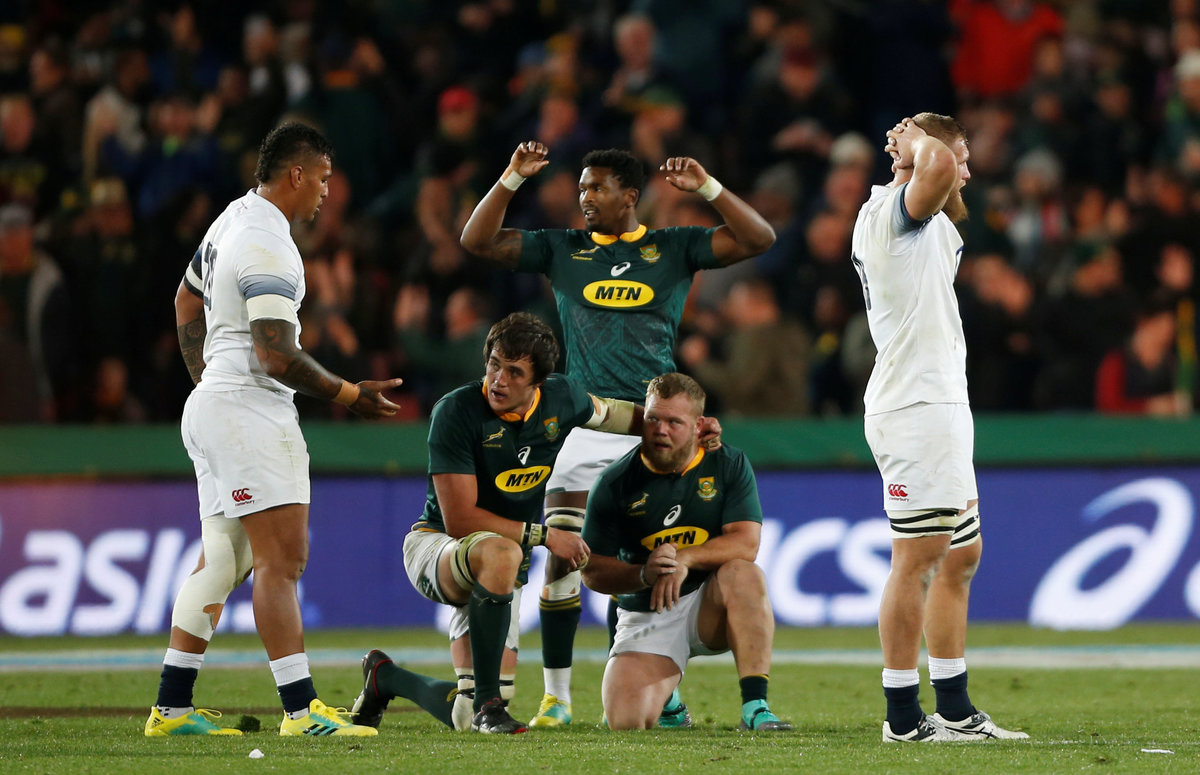 JOHANNESBURG (Reuters) - South Africa began a new era for their rugby with a dramatic 42-39 victory over England in the first test at Ellis Park on Saturday, coming back after conceding three tries in a horrific opening 17-minute spell to go 1-0 ahead in the three-match series.