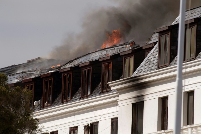 The fire started at around 5:00 am (0300 GMT) Sunday in the wood-panelled older part of the complex -- a section that once housed South Africa's first parliament.
