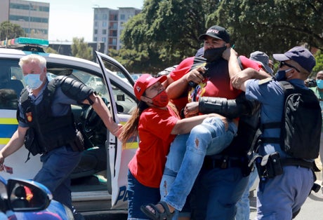 Police reportedly used stun grenades to disperse a crowd that attempted to make their way to parliament. Under the COVID-19 lockdown level 3 regulations, no political gatherings are allowed.
