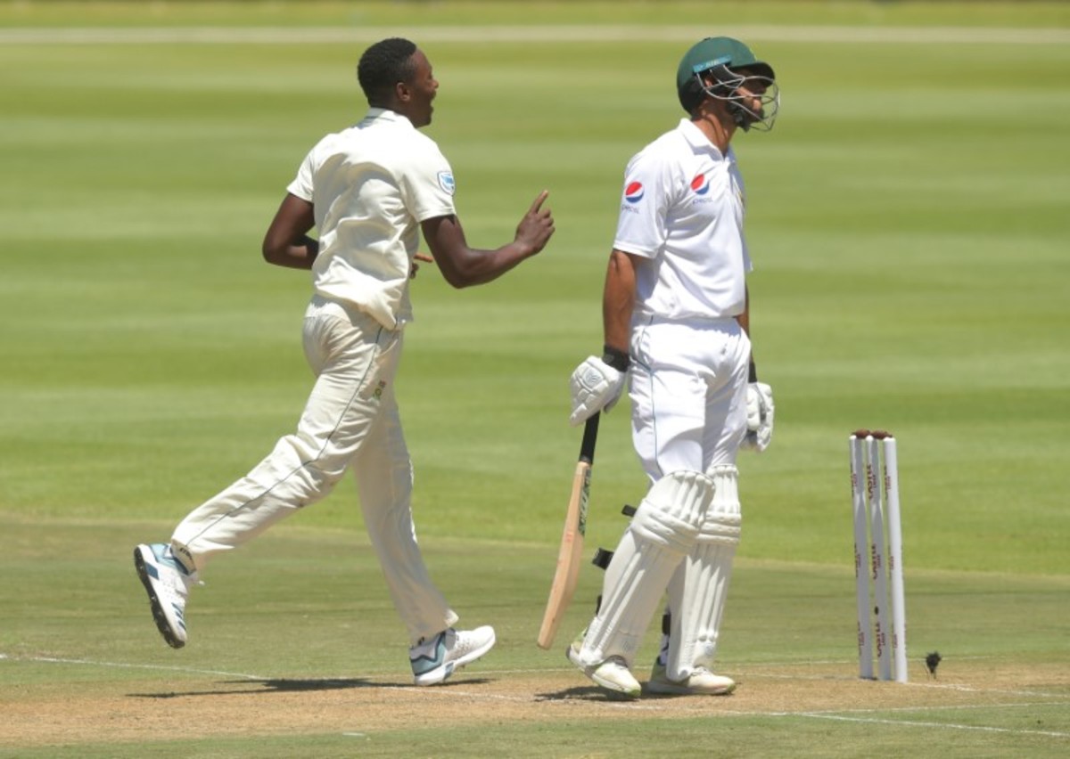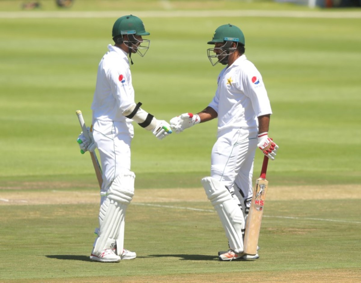Cricket - South Africa v Pakistan - Second Test - PPC Newlands, Cape Town, South Africa - January 3, 2019 Pakistan's Sarfraz Ahmed celebrates his half century with Mohammad Amir REUTERS/Mike HutchingsCricket - South Africa v Pakistan - Second Test - PPC Newlands, Cape Town, South Africa - January 3, 2019 South Africa's Kagiso Rabada celebrates taking the wicket of Pakistan's Shan Masood REUTERS/Mike HutchingsCricket - South Africa v Pakistan - Second Test - PPC Newlands, Cape Town, South Africa - January 3, 2019 Pakistan's Sarfraz Ahmed in action REUTERS/Mike HutchingsCricket - South Africa v Pakistan - Second Test - PPC Newlands, Cape Town, South Africa - January 3, 2019 South Africa's Vernon Philander celebrates taking the wicket of Pakistan's Imam-ul-Haq REUTERS/Mike HutchingsCricket - South Africa v Pakistan - Second Test - PPC Newlands, Cape Town, South Africa - January 3, 2019 Pakistan's Sarfraz Ahmed in action REUTERS/Mike HutchingsCricket - South Africa v Pakistan - Second Test - PPC Newlands, Cape Town, South Africa - January 3, 2019 Pakistan's Azhar Ali dives to avoid a run out REUTERS/Mike Hutchings