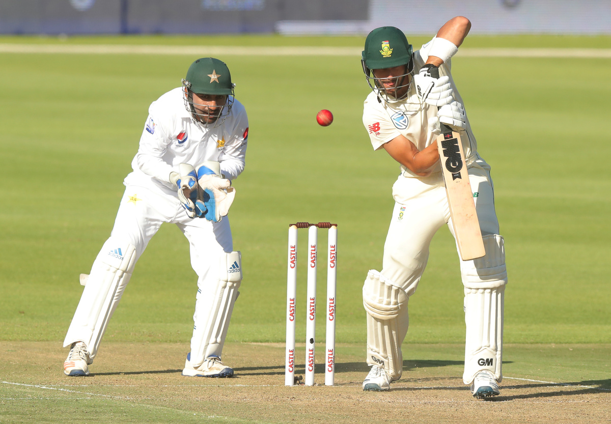 Markram's contribution put South Africa on 123 for two wickets at close, 54 runs behind after bowling out Pakistan for 177 at tea.