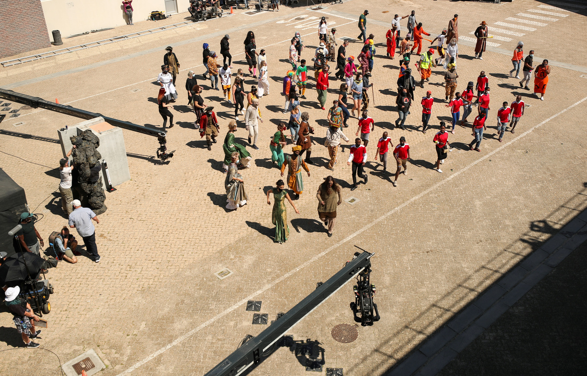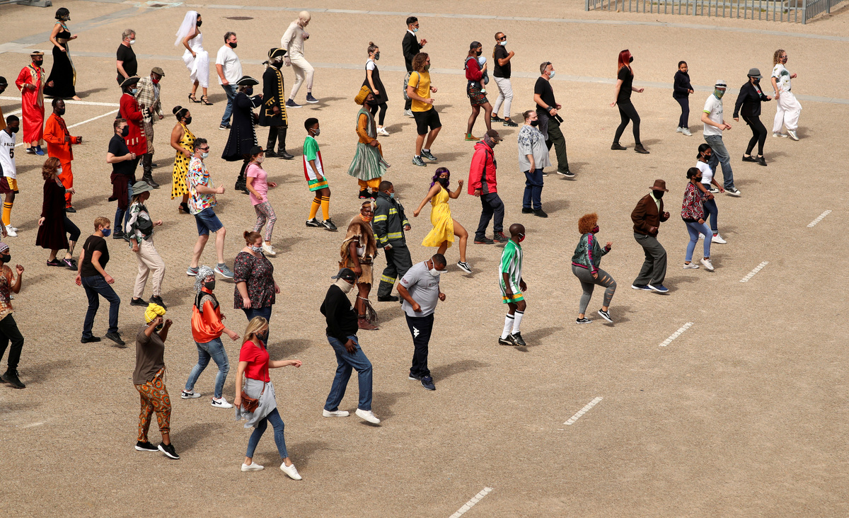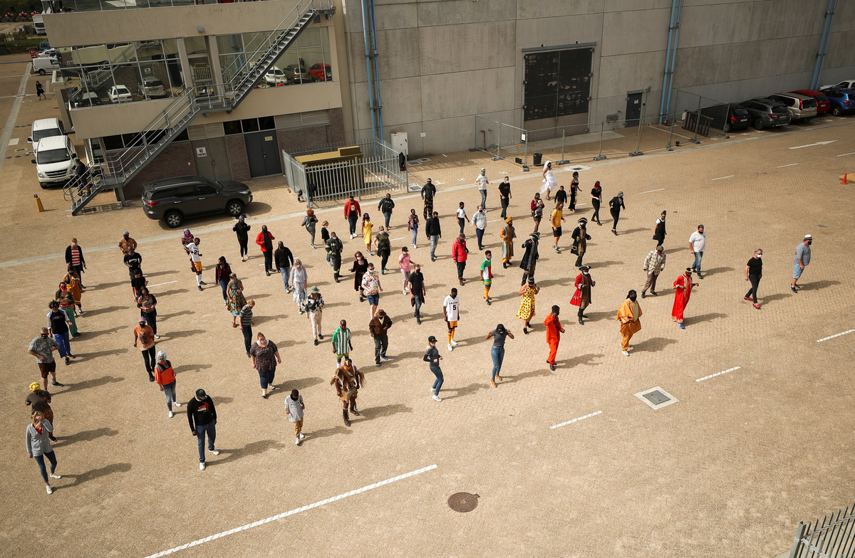 In Cape Town on Thursday at the studio where blockbusters like "Pirates of the Caribbean" and "Invictus" were filmed, actors and crew who have mostly been on furlough due the pandemic came to film a short feature on the dance craze.