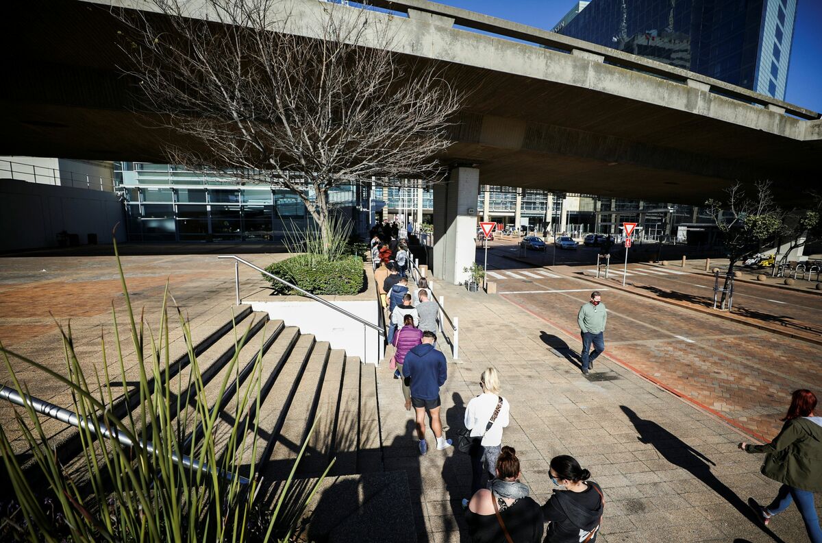 At Cape Town's convention centre, the line of people was a mile long, while dozens of cars queued at a drive vaccination venue at converted car racing track in north Johannesburg.