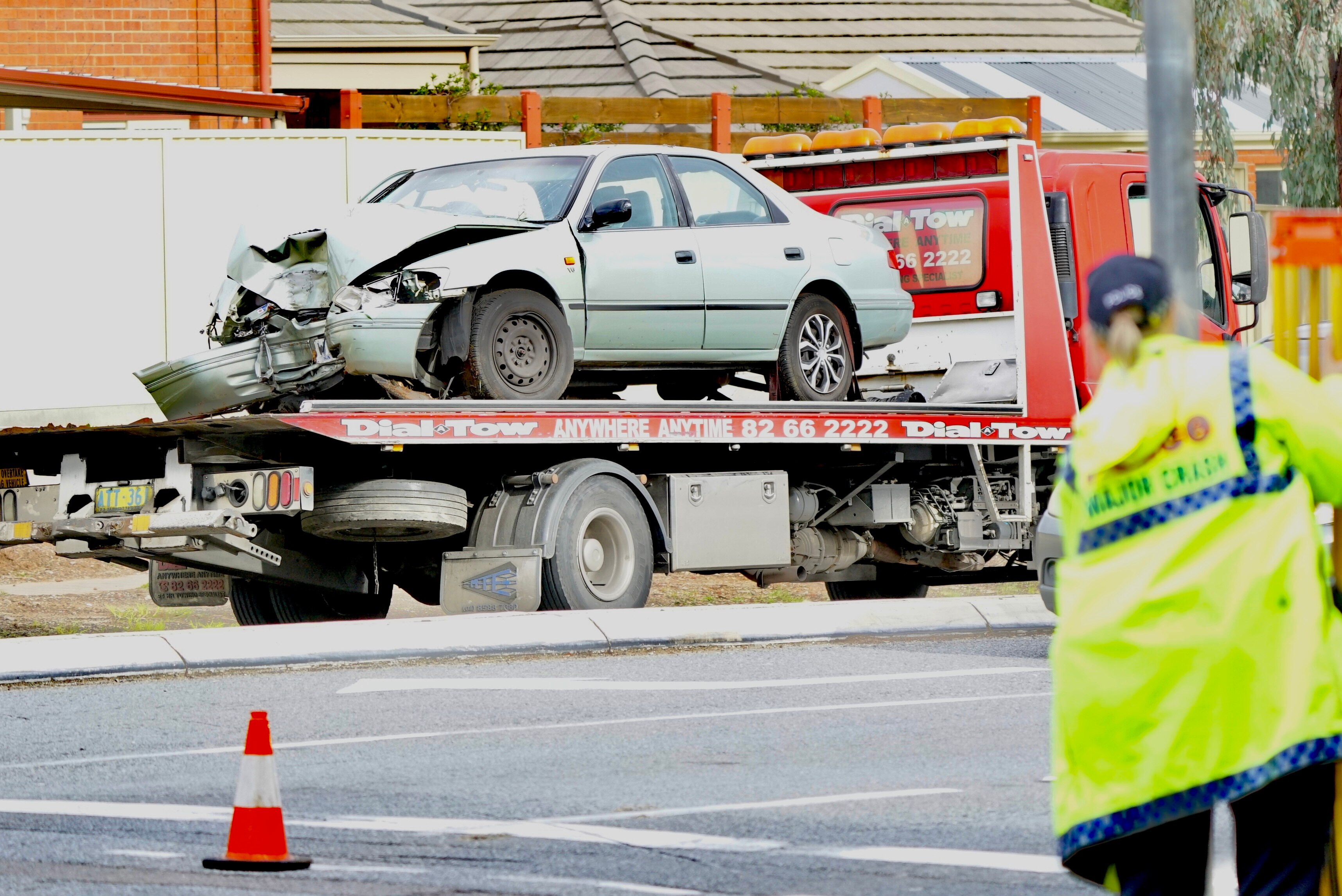 One lane of eastbound traffic on Montague Road was closed but has since reopened, as SA police examine the scene to determine the cause of the crash.