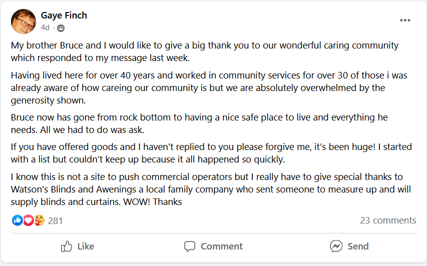 While Mr Buchanan was initially too embarrassed to ask for help, he eventually agreed to post a message on a local page on social media.