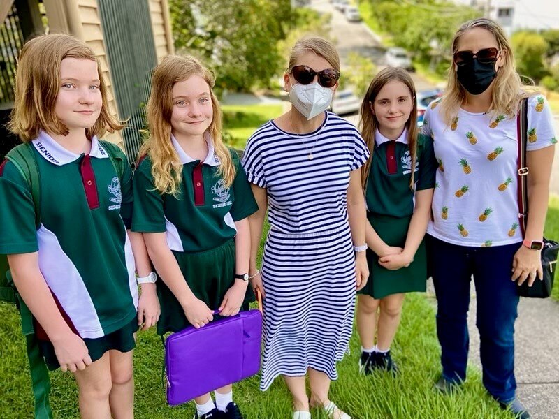 Brydie Carfoot said she was confused when she got a call today to pick up her two daughters from their Bardon school, in Brisbane, because she thought the school closures were starting tomorrow.