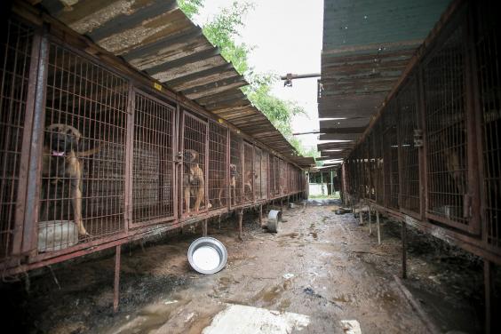 More than 2.5 million dogs a year are reared on thousands of dog meat farms across South Korea, according to HSI.