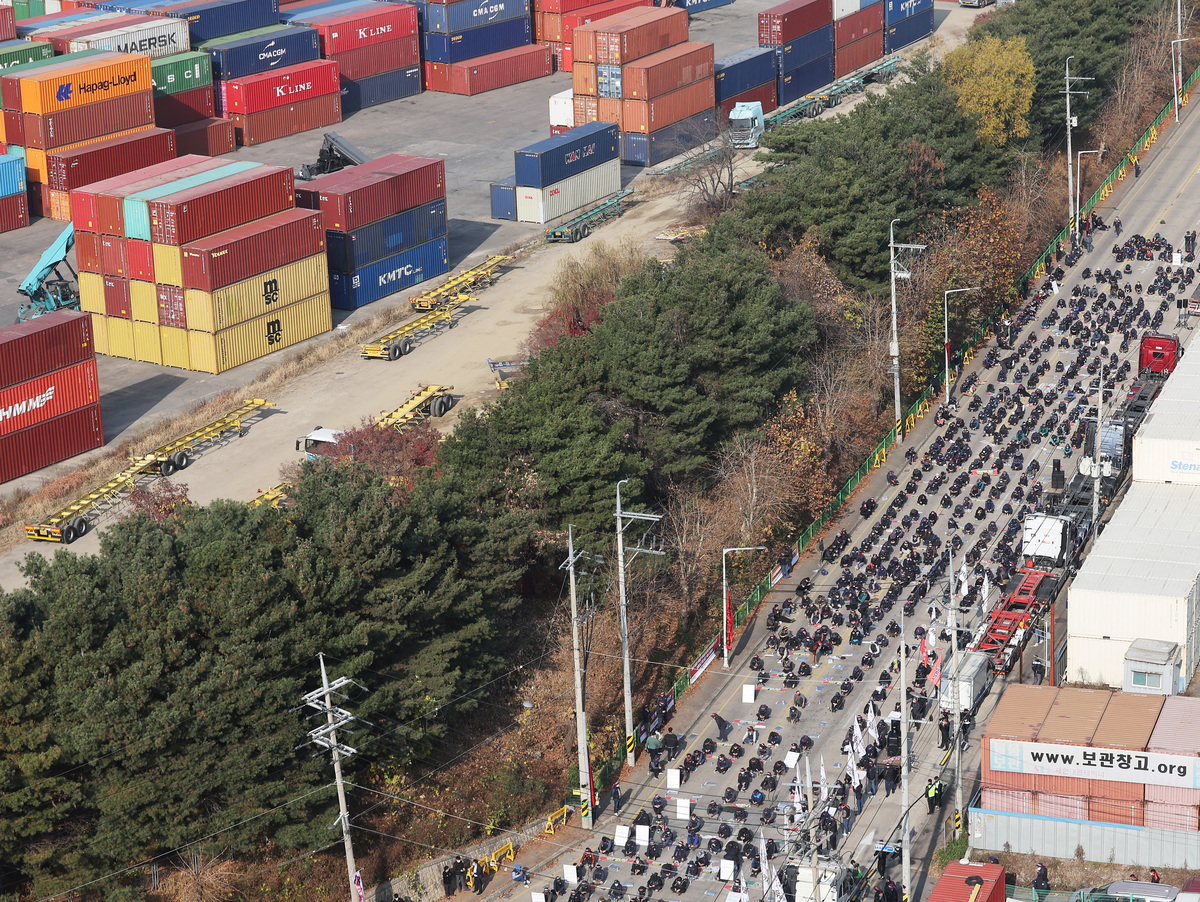 The government, which estimates daily losses at about 300 billion won ($224 million) as supplies of cement and fuel for gas stations run short, raised its warning of cargo transport disruption to the highest level.