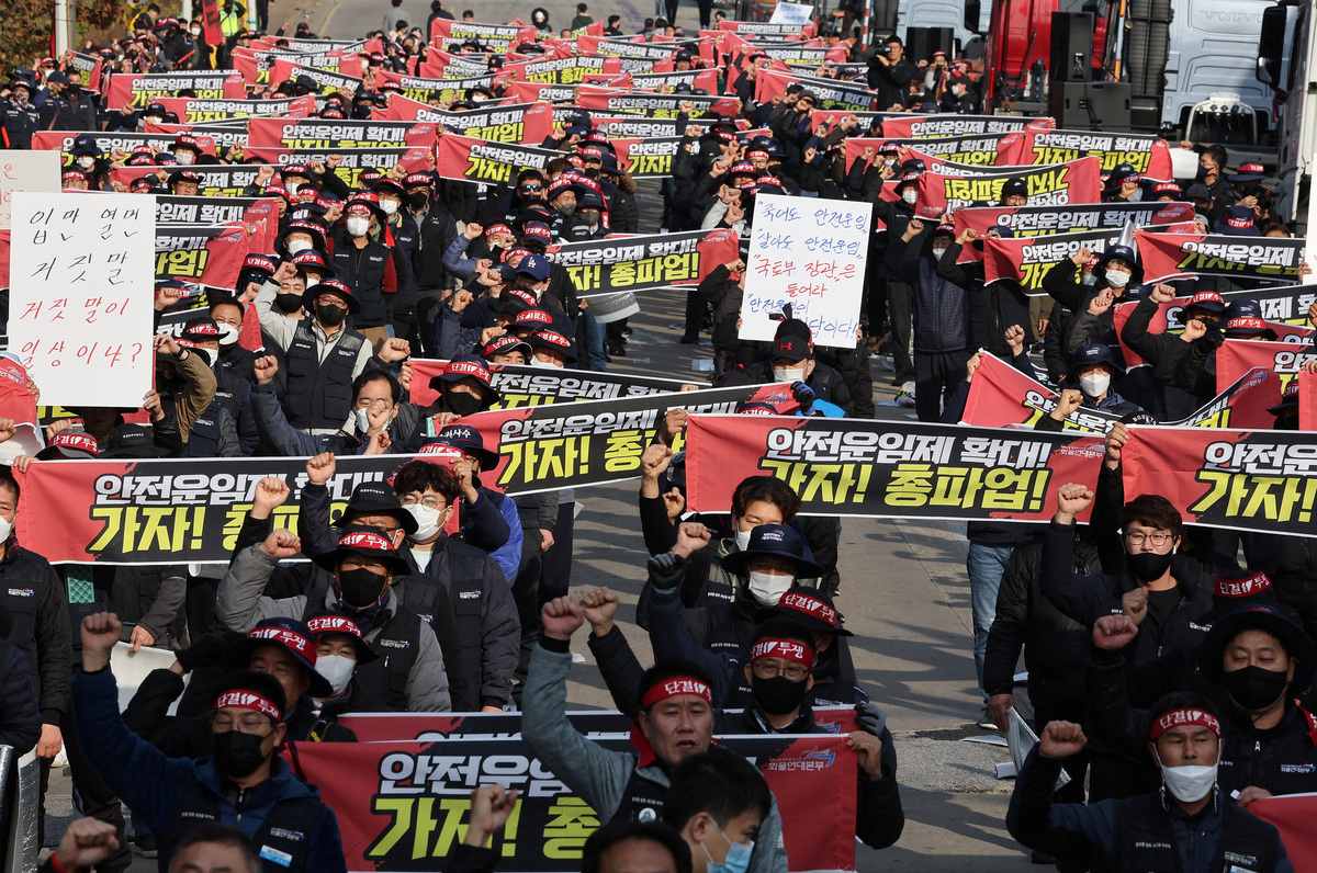 The law allows use of such an order to tackle a serious transport disruption, and failure to comply can lead to punishments such as cancellation of trucker licences and three years in jail, or a fine of up to 30 million won ($22,550).