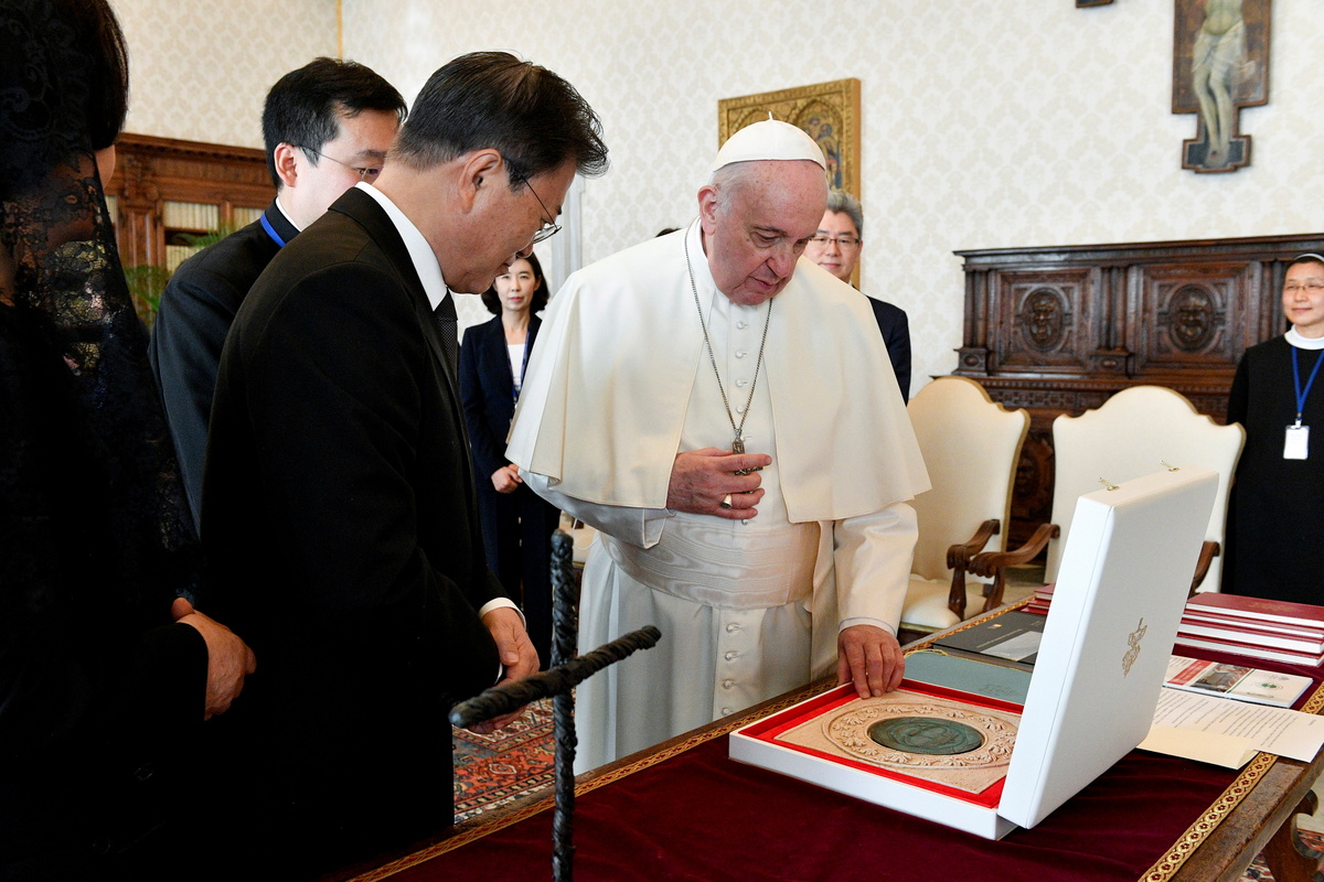 The Vatican was due to release a statement on Moon's meeting with the pope later on Friday.
