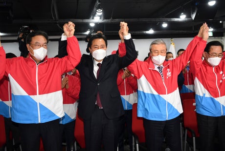 South Korea’s conservative opposition party has won sweeping victories in mayoral by-elections in the country’s two biggest cities, votes seen as a test of public sentiment ahead of next year’s presidential election.