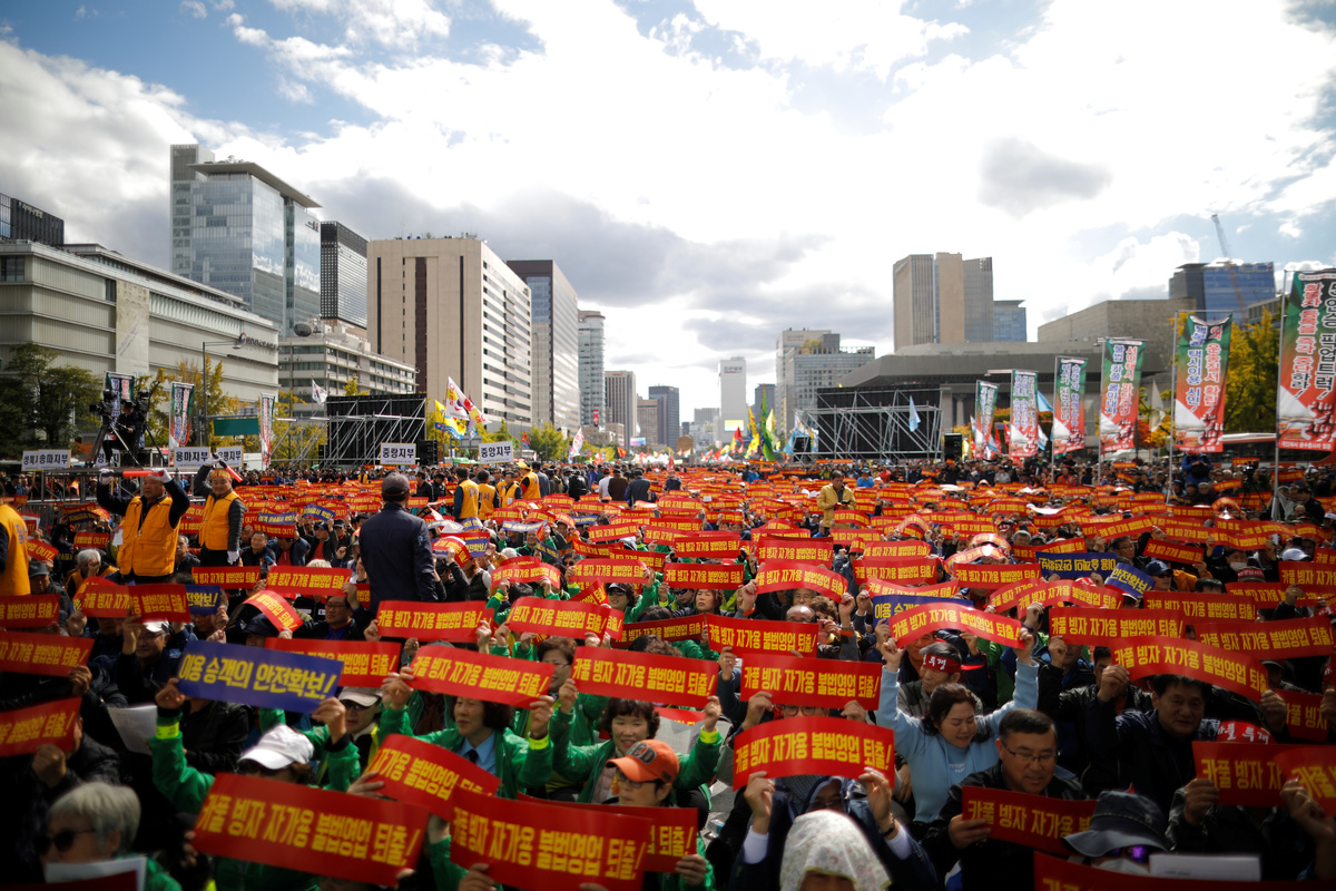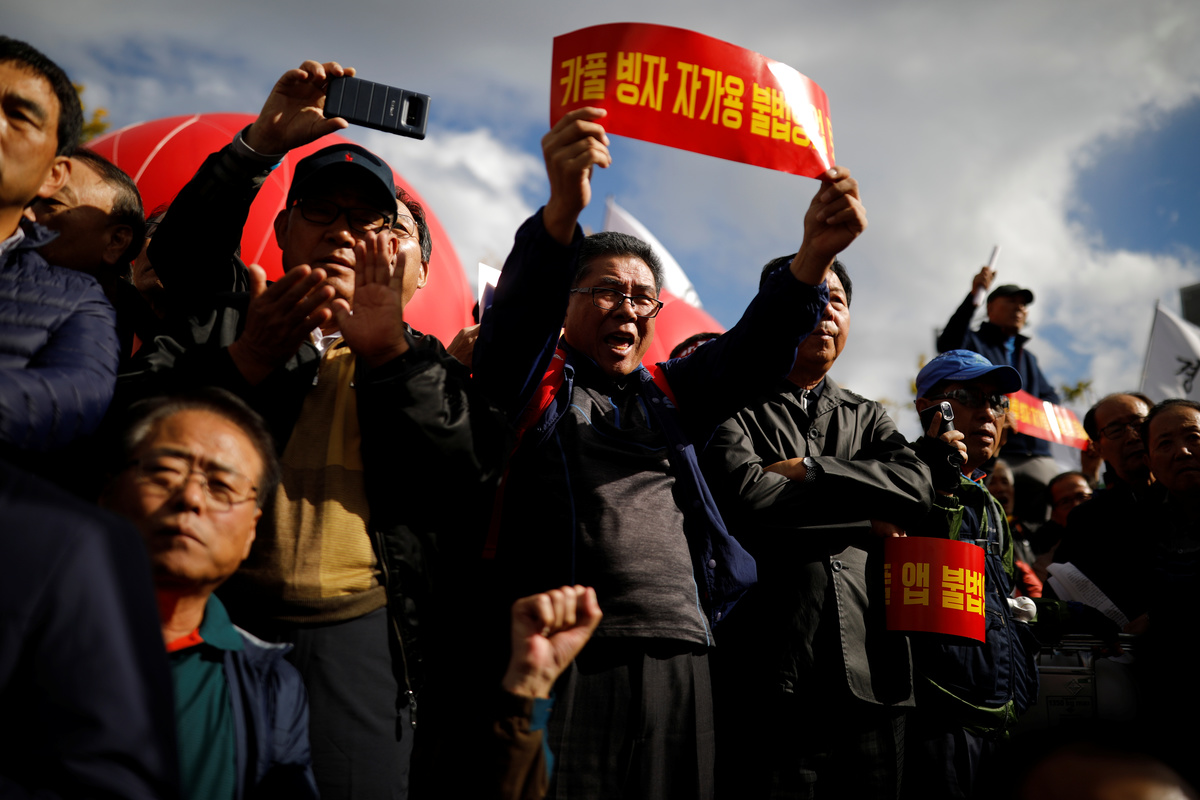 SEOUL (Reuters) - Tens of thousands of South Korean taxi-drivers held a rally on Thursday in Seoul, the capital, saying a carpooling service planned by the operator of the country's top chat app would threaten their livelihoods and jobs.