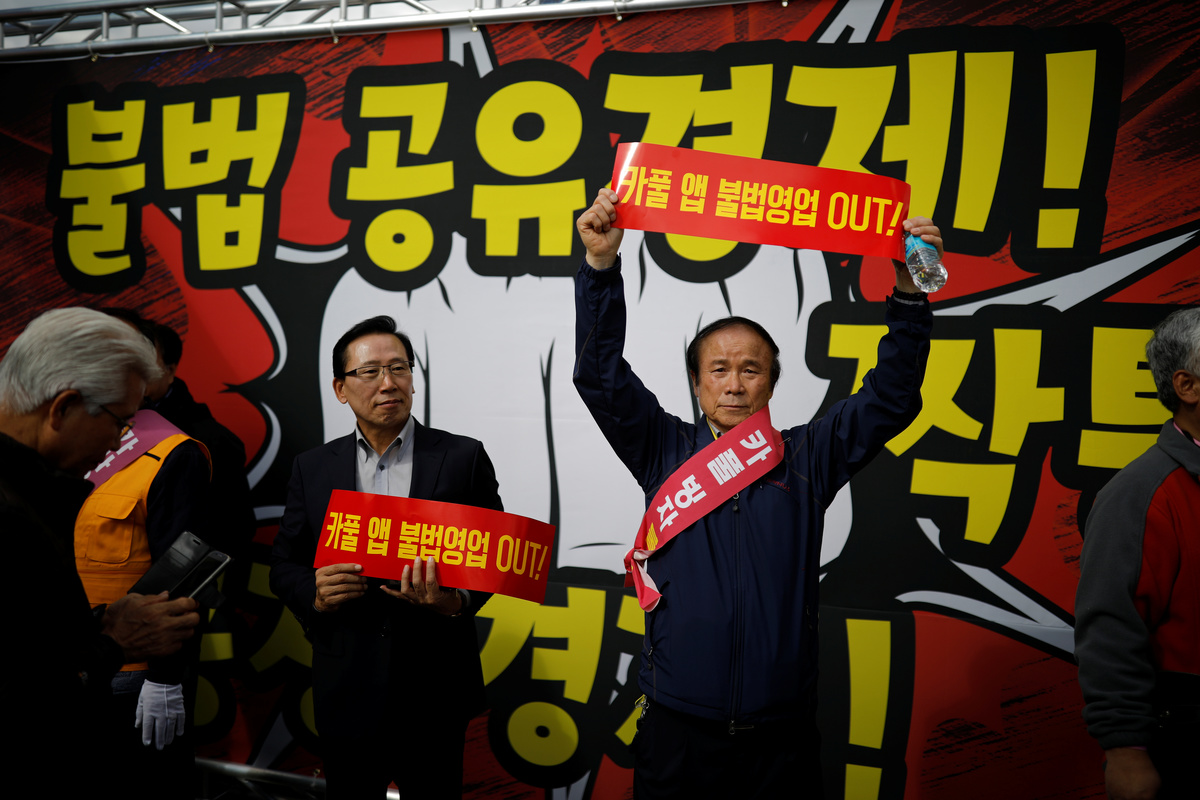 A carpooling service would put his job at risk, said one driver, Lee Sun-joo, who has 30 years of experience but works 12-hour days to earn just 2 million won ($1,762) every month.