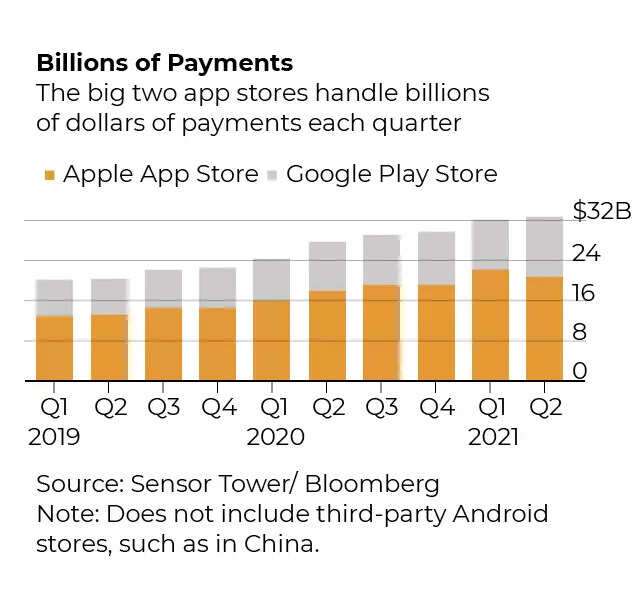 The revenue streams in question are central to profit growth for both Apple and Google. The iPhone maker’s App Store feeds broader efforts to grow income from services and subscriptions, producing around $20 billion annually, according to Sensor Tower.
