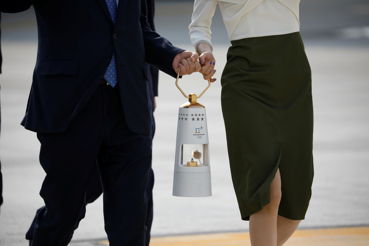 Flown in from Athens following a handover ceremony at the Panathenaic Stadium, which hosted the first modern Games in 1896, the flame arrives at a time of heightened tensions over North Korea's nuclear and missile programs.