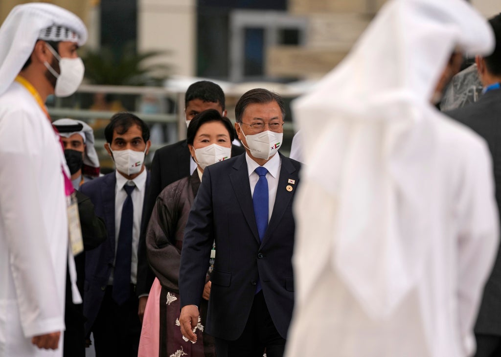 From Dubai’s Expo 2020, where South Korea boasts a sprawling pavilion to showcase the country’s high-tech and cultural achievements, President Moon praised the world's fair and pledged the countries will “transcend generations and national borders to build back together and leap forward together.”
