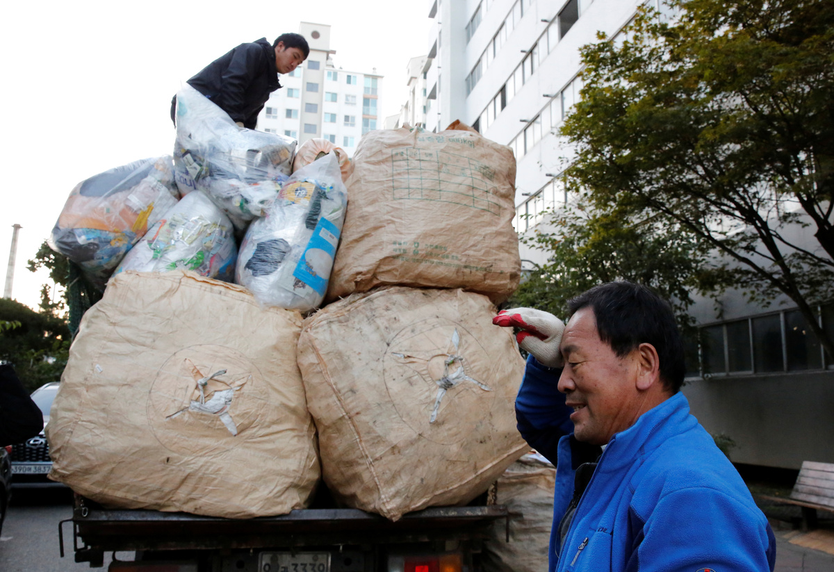 The recycling rate for collected waste fell to 40.6% in 2019 compared with 57.9 percent in 2015, according to lawmaker Lee Soo-jin, citing government data.