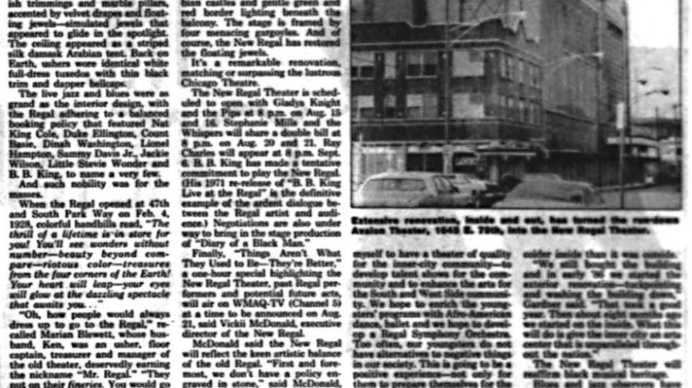 The Gardners renamed the venue the New Regal Theater in honor of a popular music spot in Bronzeville that had been torn down. The building was designated a Chicago landmark in 1992.