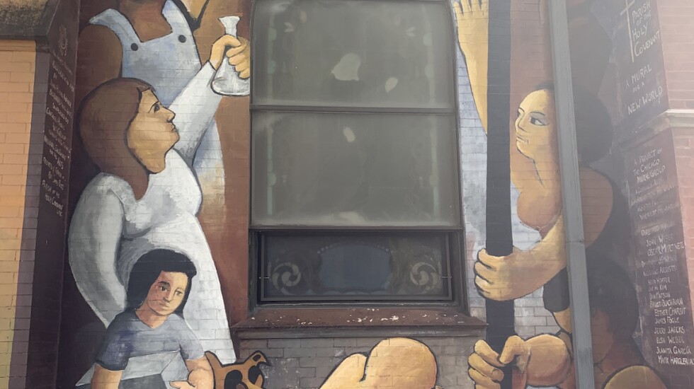 Called “For a New World (Para un Mundo Nuevo),” the mural was painted in 1973 by John Pitman Weber and a colleague on the side of the Holy Covenant United Methodist Church at 925 W. Diversey Parkway.