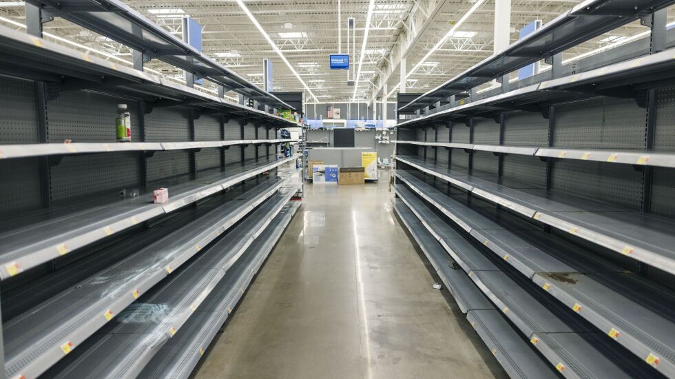 The shadow of Walmart’s logo and name hung above the Chatham Supercenter location on Sunday, its last day of operation, as dozens of shoppers streamed in to shop among increasingly empty shelves.