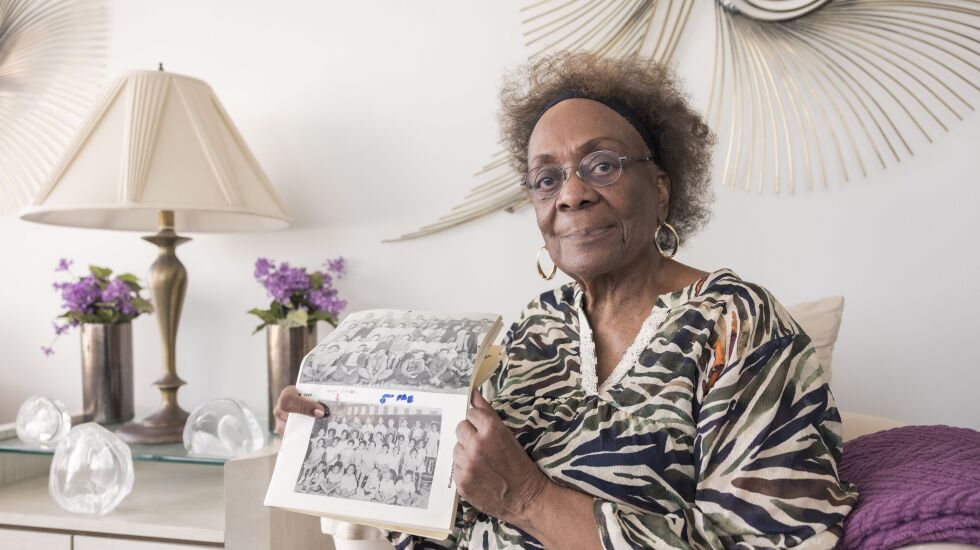 She recalled the pretty girl who lived upstairs whose dimples were the envy of the Johnson sisters; the red and white barber pole that signaled the barbershop that operated out of the basement; and the pretty French doors that separated the dining room from the living room inside the apartment, where she first developed a love for learning.