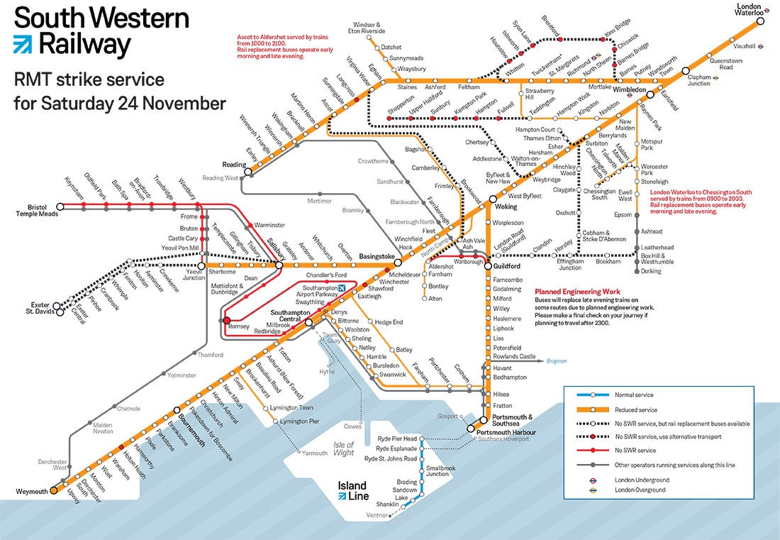 Action will apply across the network and impact journeys into London terminating at Waterloo and Richmond stations; the Island Line on the Isle of Wight will operate as normal.