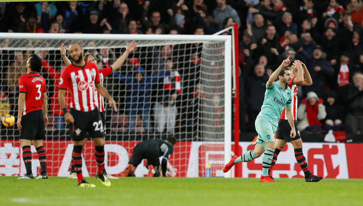 Mkhitaryan's second goal was fortunate in the extreme, his shot taking a big deflection off Jannik Vestergaard to leave goalkeeper Alex McCarthy helpless.