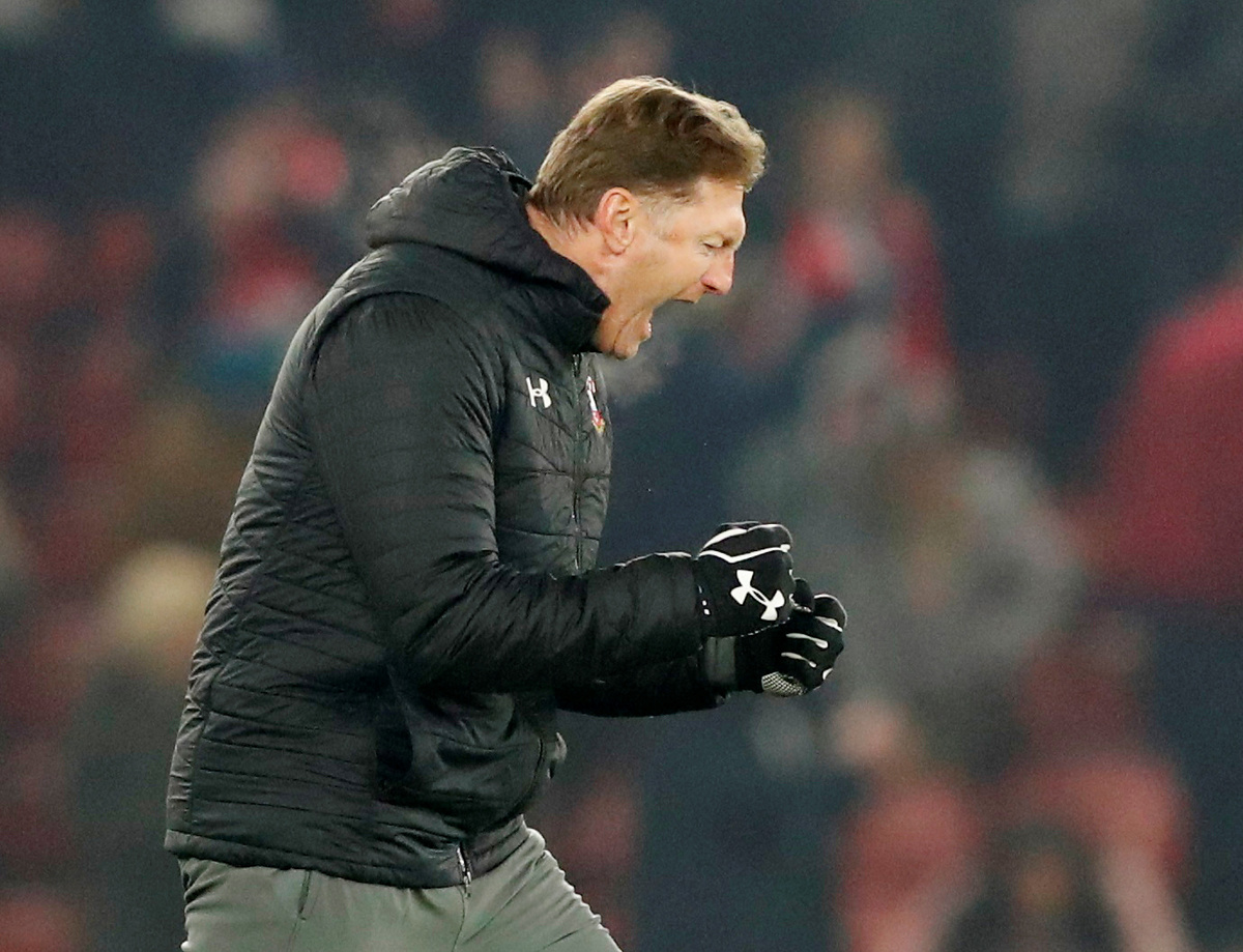 Soccer Football - Premier League - Southampton v Norwich City - St Mary's Stadium, Southampton, Britain - December 4, 2019 Southampton manager Ralph Hasenhuttl celebrates at the end of the match Action Images via Reuters/Peter Cziborra