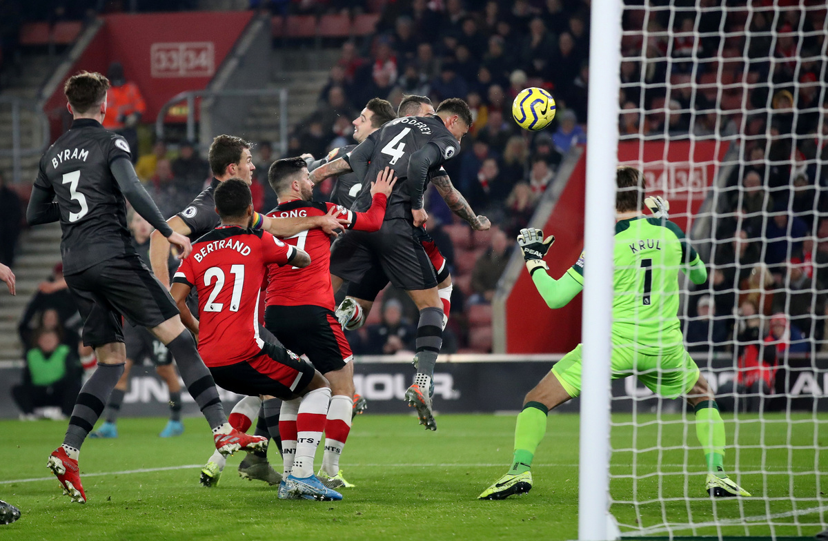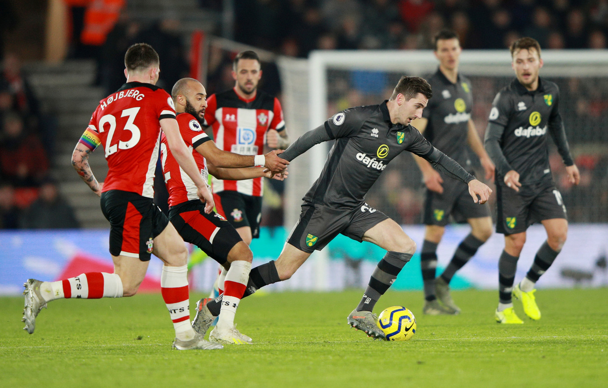 Southampton almost netted the third on the stroke of halftime when Norwich keeper Tim Krul only just managed to tip Pierre Hojberg's deflected shot over the bar.