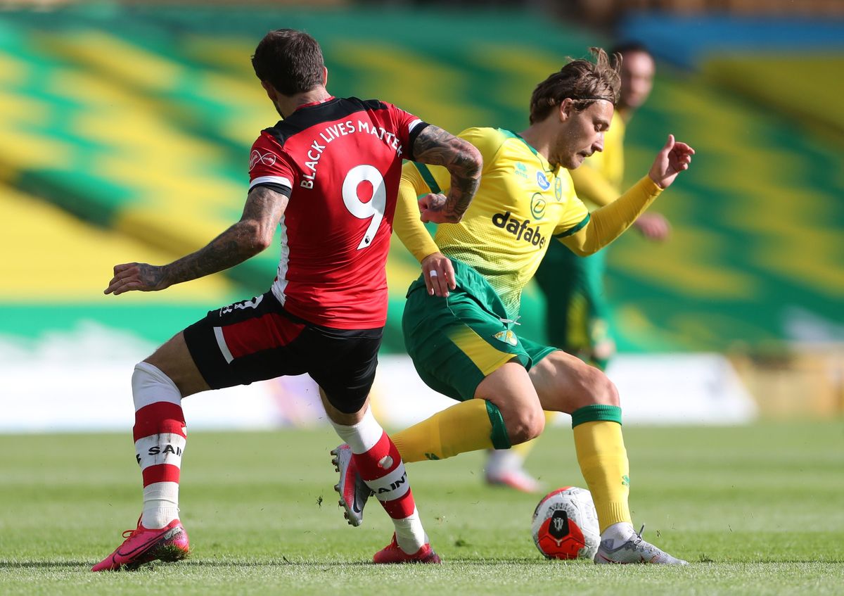 Soccer Football - Premier League - Norwich City v Southampton - Carrow Road, Norwich, Britain - June 19, 2020 Southampton's Danny Ings in action with Norwich City's Tom Trybull, as play resumes behind closed doors following the outbreak of the coronavirus disease (COVID-19) Mike Egerton/Pool via REUTERS