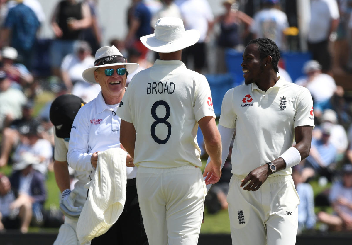 Cricket - New Zealand v England - First Test - Bay Oval, Mount Maunganui, New Zealand - November 22, 2019 England's Ollie Pope takes a catch to dismiss New Zealand's Ross Taylor REUTERS/Ross SetfordCricket - New Zealand v England - First Test - Bay Oval, Mount Maunganui, New Zealand - November 22, 2019 New Zealand's Tom Latham reacts as he completes a run REUTERS/Ross SetfordCricket - New Zealand v England - First Test - Bay Oval, Mount Maunganui, New Zealand - November 22, 2019 New Zealand's Henry Nicholls in action REUTERS/Ross SetfordCricket - New Zealand v England - First Test - Bay Oval, Mount Maunganui, New Zealand - November 22, 2019 England's Stuart Broad during the match REUTERS/Ross SetfordCricket - New Zealand v England - First Test - Bay Oval, Mount Maunganui, New Zealand - November 22, 2019 England's Jofra Archer during the match REUTERS/Ross SetfordCricket - New Zealand v England - First Test - Bay Oval, Mount Maunganui, New Zealand - November 22, 2019 England's Stuart Broad and Jofra Archer during the match REUTERS/Ross SetfordCricket - New Zealand v England - First Test - Bay Oval, Mount Maunganui, New Zealand - November 22, 2019 England's Jofra Archer in action REUTERS/Ross SetfordCricket - New Zealand v England - First Test - Bay Oval, Mount Maunganui, New Zealand - November 22, 2019 New Zealand's Jeet Raval in action REUTERS/Ross SetfordCricket - New Zealand v England - First Test - Bay Oval, Mount Maunganui, New Zealand - November 22, 2019 New Zealand's Neil Wagner celebrates after taking the wicket of England's Jos Buttler REUTERS/Ross SetfordCricket - New Zealand v England - First Test - Bay Oval, Mount Maunganui, New Zealand - November 22, 2019 England's Jos Buttler hits a six REUTERS/Ross SetfordCricket - New Zealand v England - First Test - Bay Oval, Mount Maunganui, New Zealand - November 22, 2019 England's Jos Buttler walks off the pitch dejected after his wicket is taken by New Zealand's Neil Wagner REUTERS/Ross SetfordCricket - New Zealand v England - First Test - Bay Oval, Mount Maunganui, New Zealand - November 22, 2019 New Zealand's Jeet Raval in action REUTERS/Ross SetfordCricket - New Zealand v England - First Test - Bay Oval, Mount Maunganui, New Zealand - November 22, 2019 England's Jofra Archer in action REUTERS/Ross SetfordCricket - New Zealand v England - First Test - Bay Oval, Mount Maunganui, New Zealand - November 22, 2019 England's Jofra Archer in action REUTERS/Ross SetfordCricket - New Zealand v England - First Test - Bay Oval, Mount Maunganui, New Zealand - November 22, 2019 New Zealand's Neil Wagner takes the wicket of England's Stuart Broad REUTERS/Ross Setford