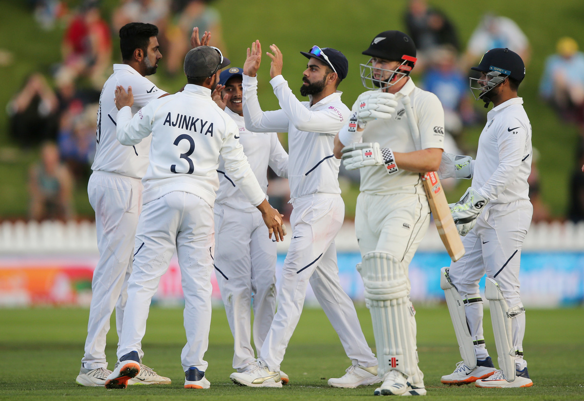 Henry Nicholls was then caught by Virat Kohli at slip off Ravichandran Ashwin for 17 in the gloomy conditions.